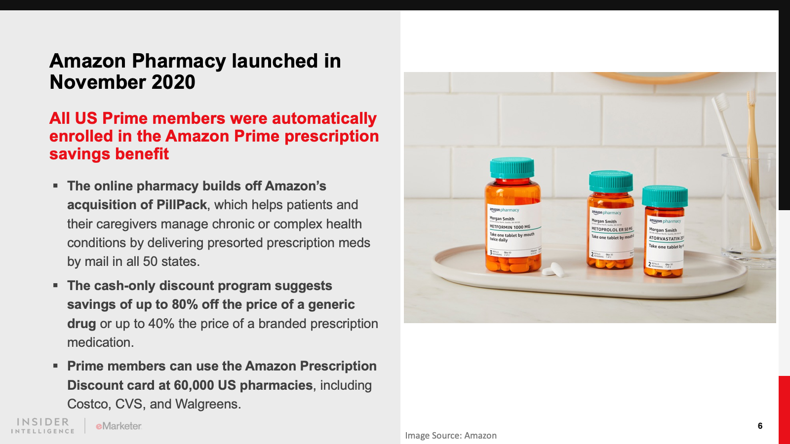 KEY STAT: Amazon owns ecommerce in the US, with sales expected to hit $386.40 billion in 2021, according to our forecast. With a market capitalization of almost $1.9 trillion as of mid-July, the company must find new areas with huge growth potential that build on its core ecommerce capability. The $4.01 trillion US healthcare market is a likely target.